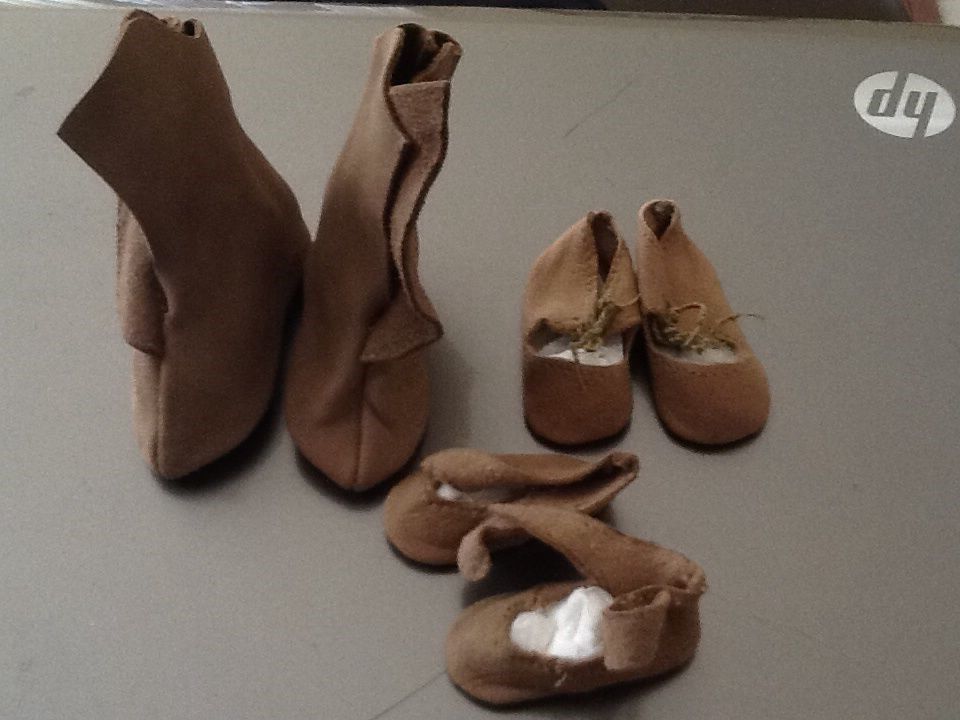 Lot Of Three pair of Ultra Soft Antique Doll , Boots, Shoes in Brown Deer Skin?