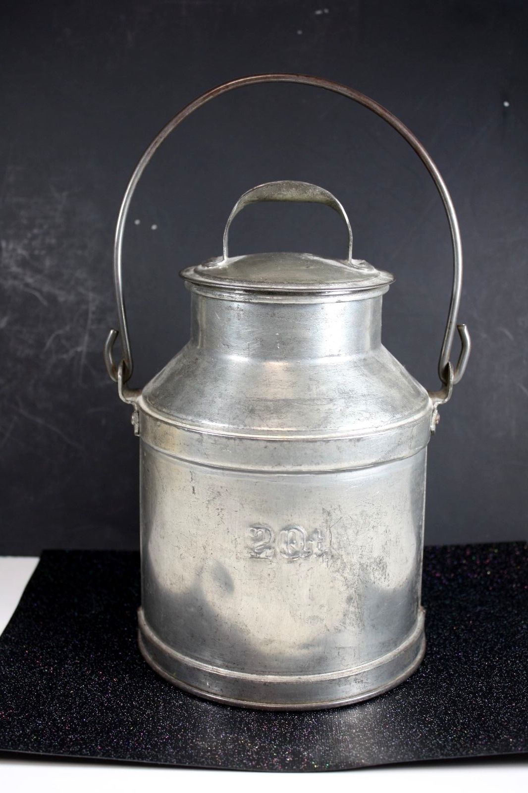 Title (ebay affiliate link): Vintage Milk Can Aluminum Two 2 Quart Dairy Cream Pail, Bail Handle. nice one