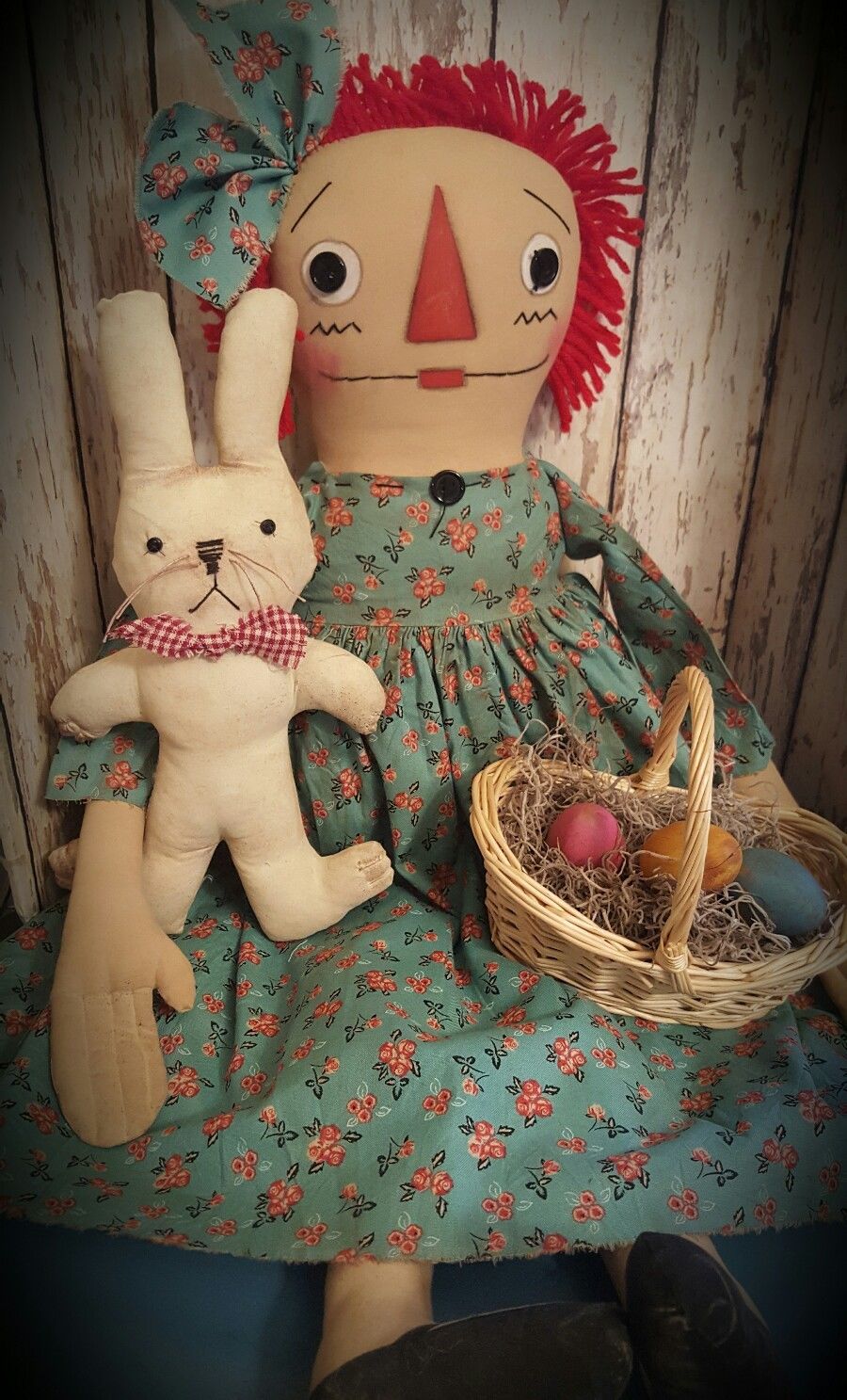Title (ebay affiliate link): Primitive Big Raggedy Ann Doll w/ Rabbit & Easter Basket ~*~ Annie ~*~ Spring~*~