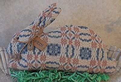 Primitive Vintage Woven Coverlet Easter Bunny Pillow Tuck Shelf Sitter Blue/pink