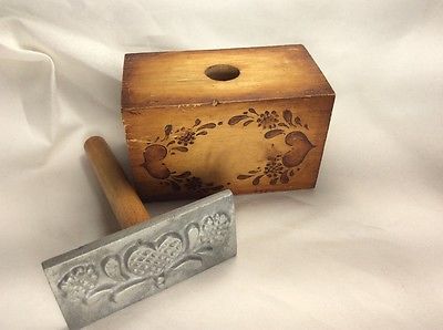 Title (ebay affiliate link): Antique Vintage Wooden and Metal Tole Painted Butter Mold Press Hearts