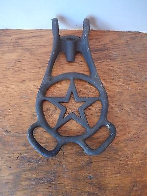 ANTIQUE PRIMITIVE COUNTRY DAIRY MILK COW FARM CAST IRON STAR WATER BOWL HOLDER