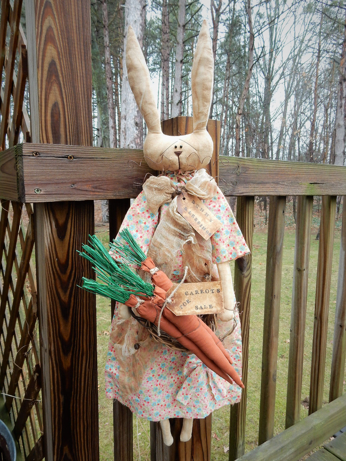 Title (ebay affiliate link): FoLk Art PrimiTive FLower Dress EasTer BasKeT Bunny Raggedy CARRoTs RABBIT DOLL