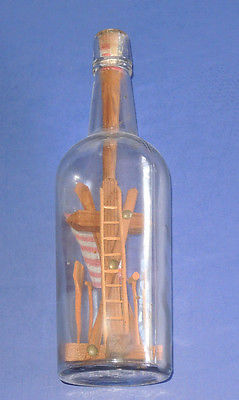 Title (ebay affiliate link): Intricate Folk Art Wooden Sculpture in Bottle Whimsy Cross Ladder Axe Fireman