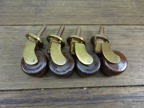 Title (ebay affiliate link): 4 ANTIQUE VINTAGE FURNITURE SWIVEL BROWN CASTERS BRASS PORCELAIN CERAMIC WHEELS