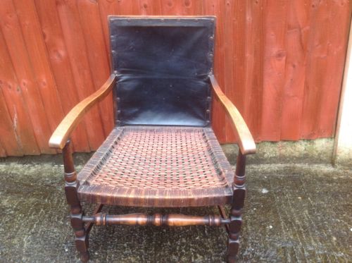 Title (ebay affiliate link): VINTAGE CHILDRENS WOODEN CHAIR WITH RATTAN SEAT AND LEATHER BACK
