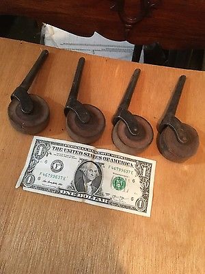 Title (ebay affiliate link): Lot Of 4 Antique Metal Casters With Wooden Wheels no reserve