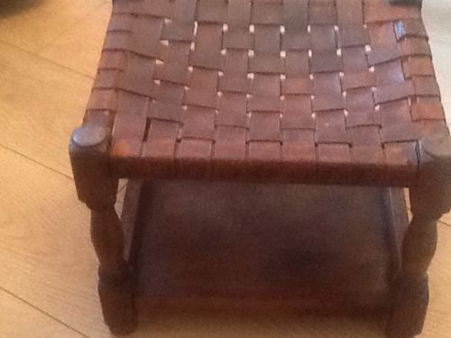 ANTIQUE VINTAGE LEATHER WOVEN WOODEN FOOT STOOL