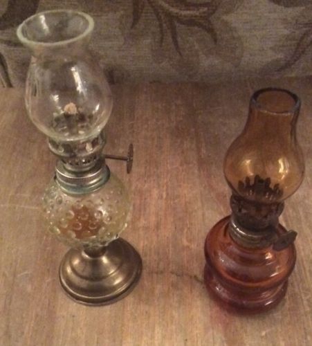 2 x miniature vintage oil lamps