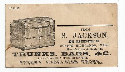 Title (ebay affiliate link): 1870-80s Trade Card S Jackson Boston Highlands Ma Mfgr Oak EXCELSIOR TRUNK