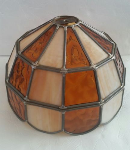 Title (ebay affiliate link): Vtg Stained Glass Lamp Shade Caramel Slag Glass & Brown Glass 11.5" Diameter