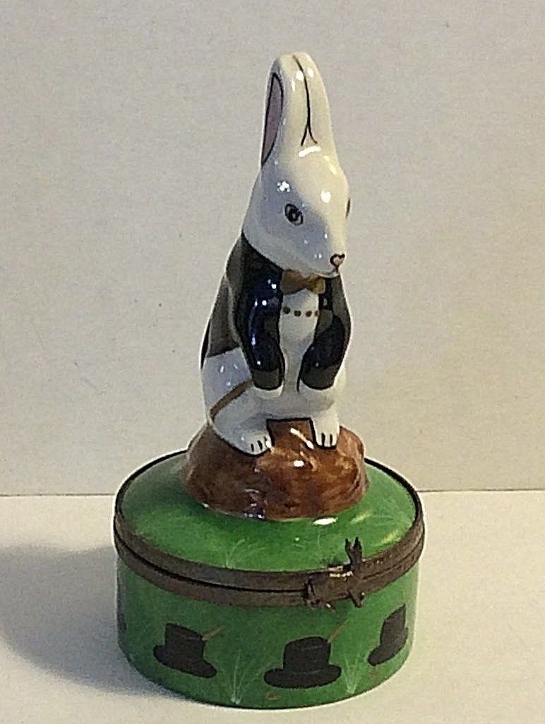 Title (ebay affiliate link): France Limoges Hand Painted Signed Bunny Rabbit Tuxedo Jacket Trinket Box