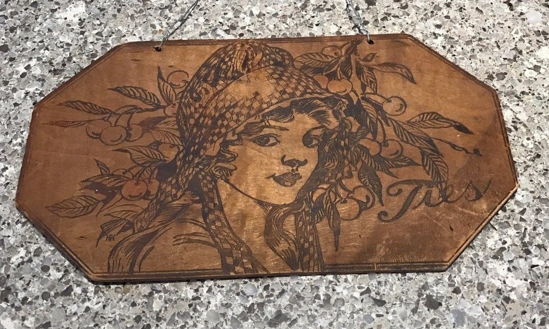 Advertising Box Wooden Wall Hanging Ties Cherries Girl Bonnet