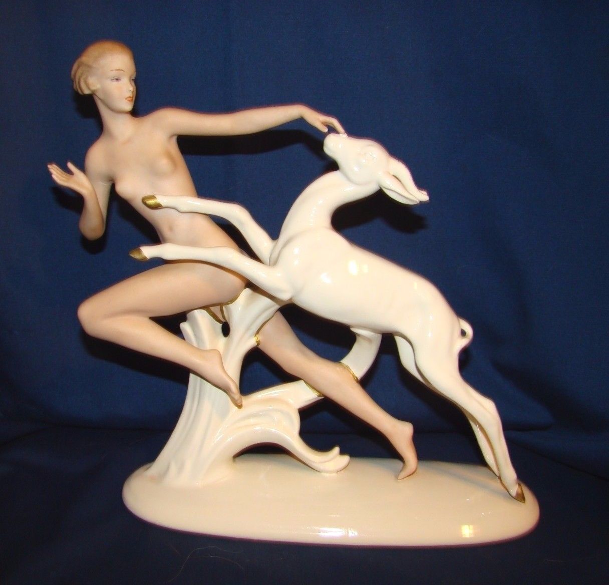 Title (ebay affiliate link): Wallendorf German Porcelain Deco Nude Woman & Deer Figurine Repaired