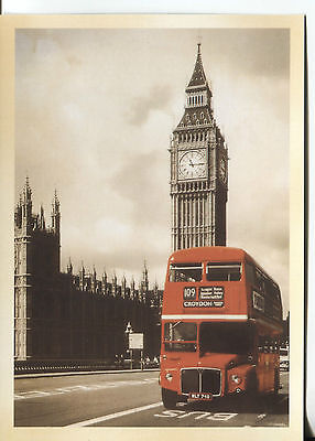 POST CARD OF ENGLISH DOUBLE DECKER BUS LONDON TOWER-PARLIMENT IN THE BACK GROUND