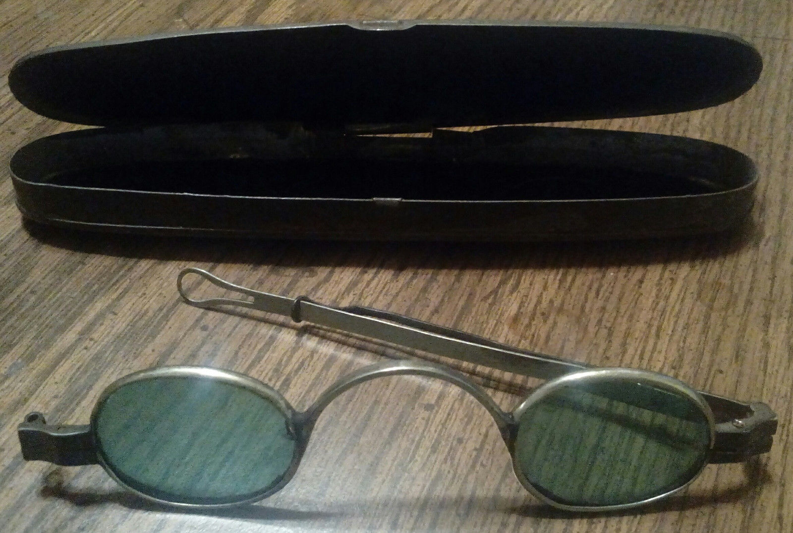 Title (ebay affiliate link): 1800s Green Lens Oval Eyeglasses Spectacles Metal Case Missing Extension 226-09