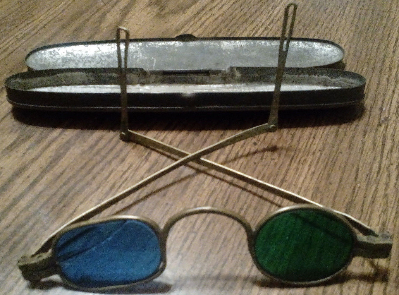 Title (ebay affiliate link): 1800''s Green/Blue Lenses Eyeglasses Spectacles w/Metal Case 226-06 Cracked Lens
