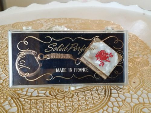 Title (ebay affiliate link): OMG!! Vtg Victorian MOP Rose Motif Solid Perfume Keychain Locket Made in France