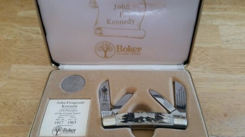 Title (ebay affiliate link): VINTAGE JOHN F KENNEDY BOKER CLASSIC SERIES 4 BLADE KNIFE AND COIN SET