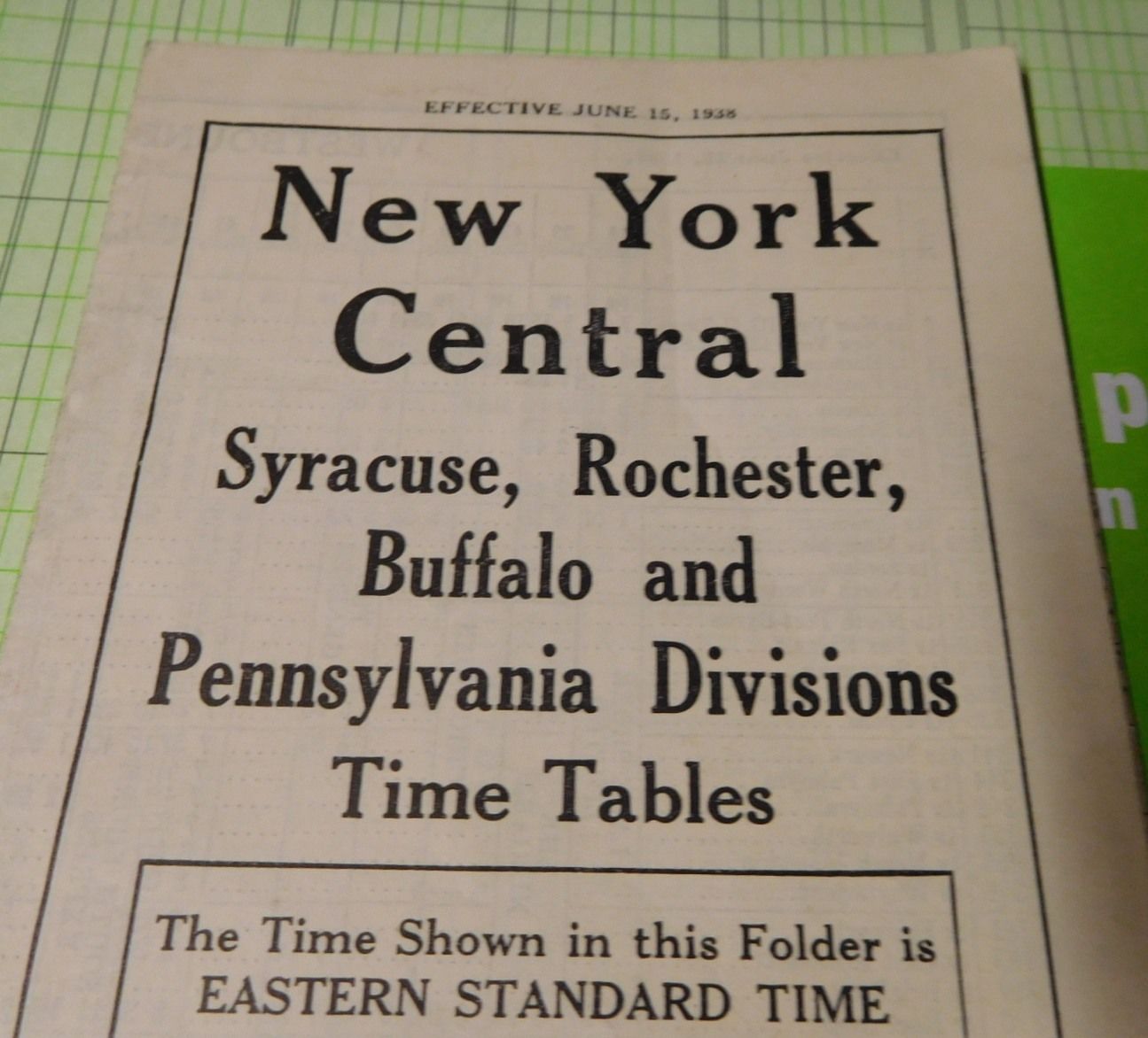 NEW YORK CENTRAL JUNE 15, 1938 RAILROAD TIME TABLE
