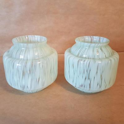 Pair of antique Victorian miniature (7.7cm) green glass oil gas wall lamp shades