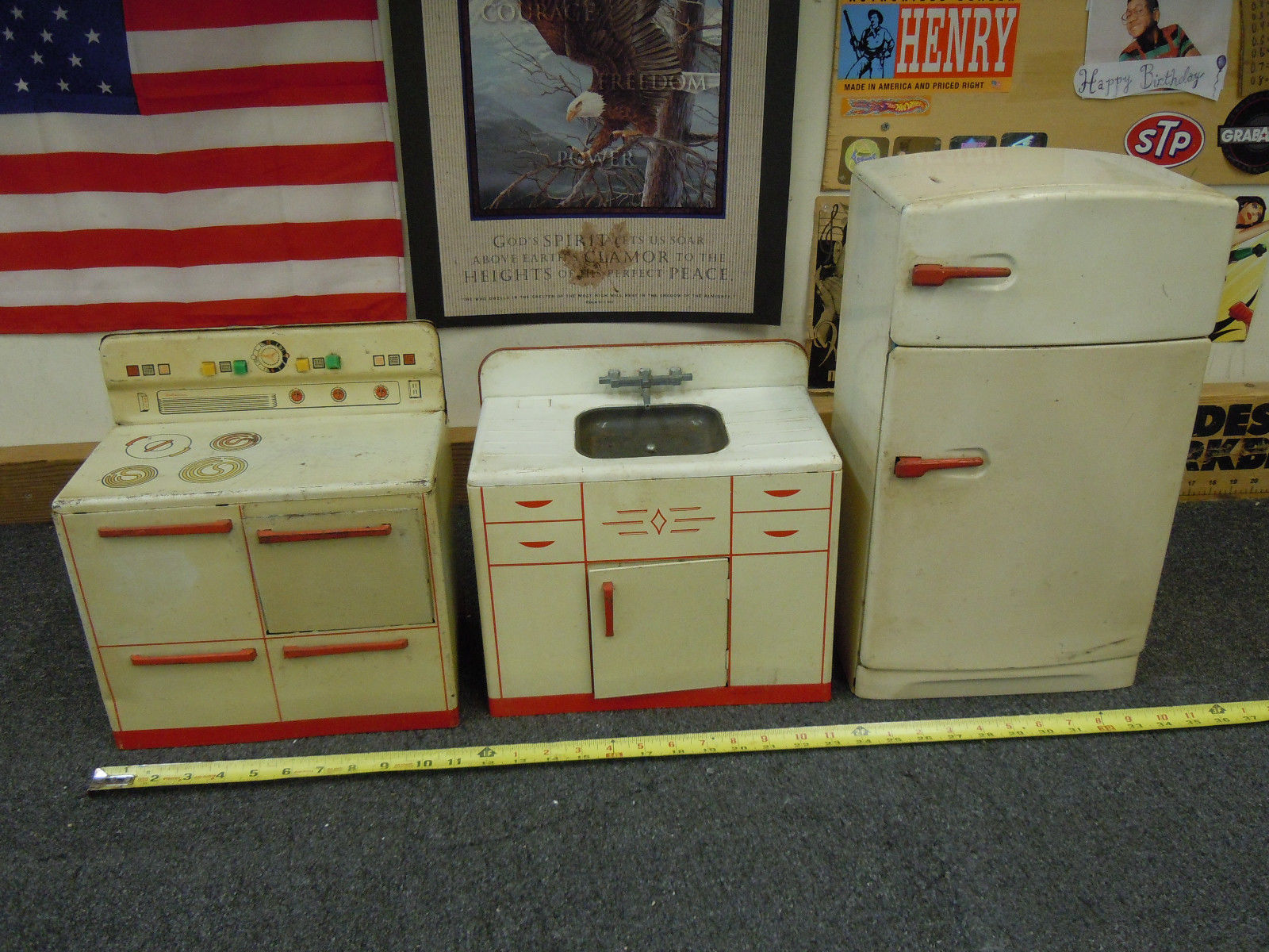 Title (ebay affiliate link): vintage antique (3) metal doll furniture appliance WOLVERINE USA 16" fridge