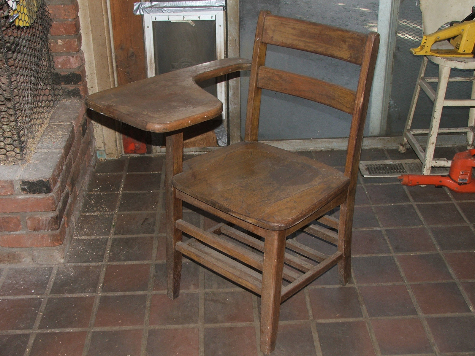 Title (ebay affiliate link): Vintage Wooden School Desk Chair with Arm Stand Tray & Book Rack Underneath