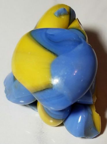EXOTIC! BLUE & YELLOW FUSED CLUSTER Akro Agate Marble Cullet Stone RARE 1.2 oz