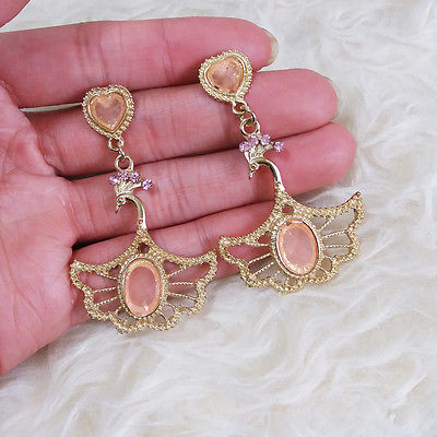 Title (ebay affiliate link): Vintage Womens Bohemian Antique Pink Bead Heart Charm Dangle Drop Stud Earrings