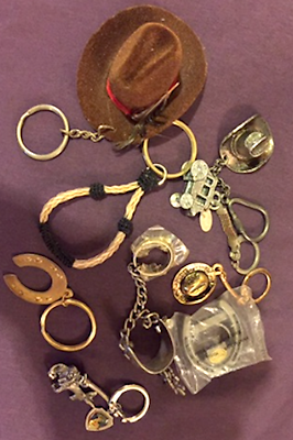 9 VINTAGE AND MODERN WESTERN THEMED KEYCHAINS