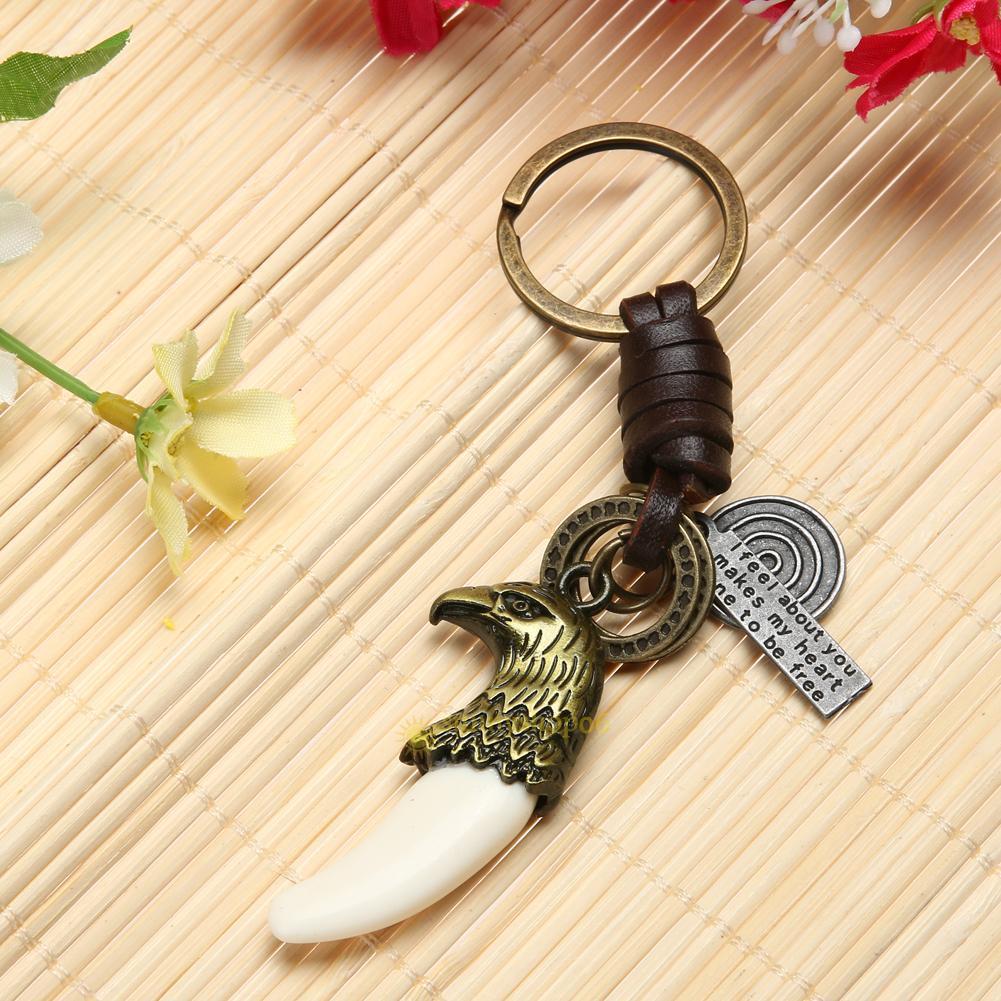 Unisex Metal Eagle Keyring Retro Vintage Bronze Alloy Leather Pendant Keychain