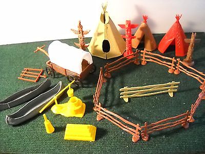 Toy Cowboys, Indians, boats,t pees,wagon,fence huge lot