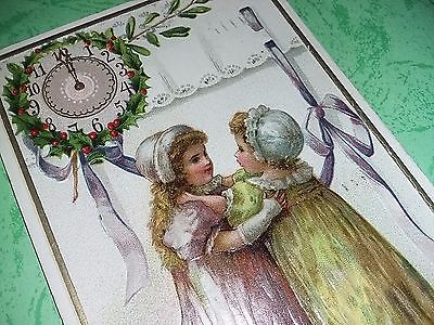 ANTIQUE OLD holiday NEW YEAR Postcard Children Little Girls CLOCK - RAPHAEL TUCK