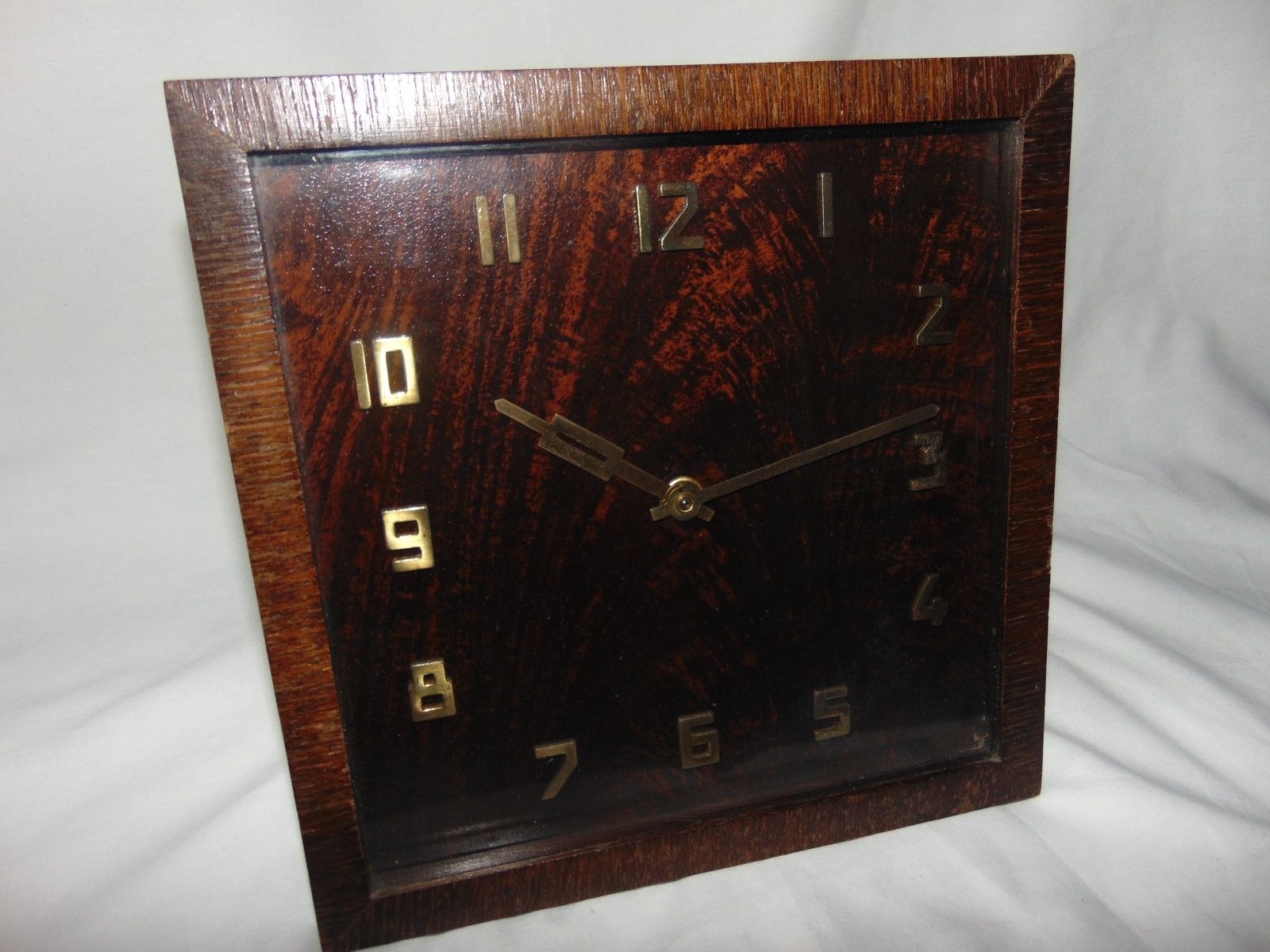 Title (ebay affiliate link): STYLISH ANTIQUE ART DECO OAK MANTLE CLOCK WITH BRASS NUMERALS BEHIND GLASS
