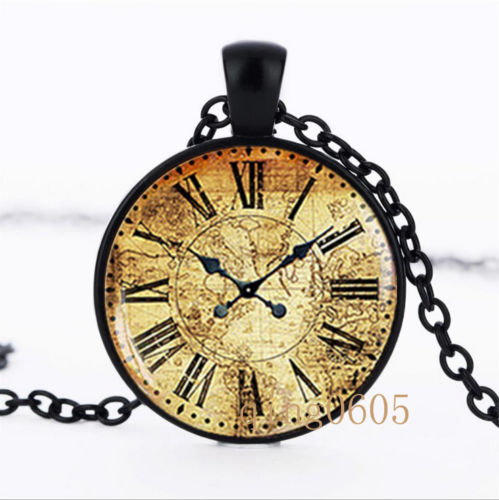 Title (ebay affiliate link): map clock antique clock photo Glass Dome black Chain Pendant Necklace wholesale