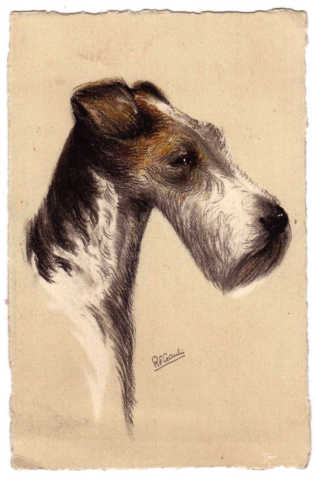 Title (ebay affiliate link): VINTAGE 1940 ARTIST SIGNED R.F GAULIS WIRE HAIRED FOX TERRIER DOG SWISS POSTCARD