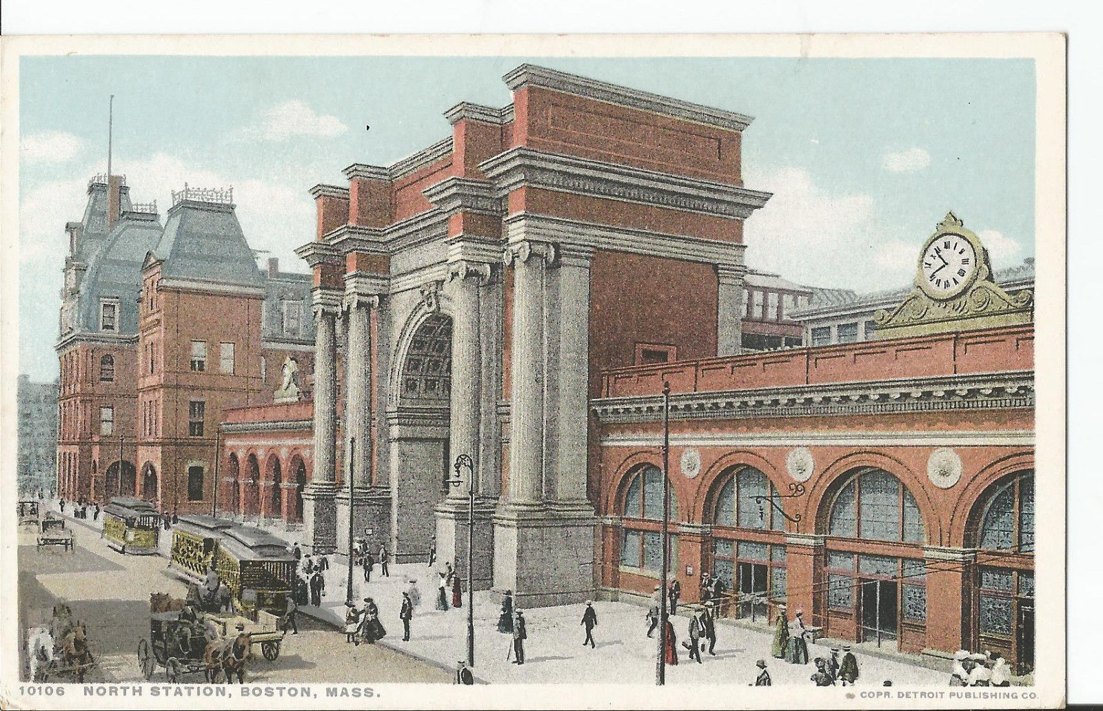 WB postcard, North Station, Boston, Mass, Phostint, Detroit Publishing
