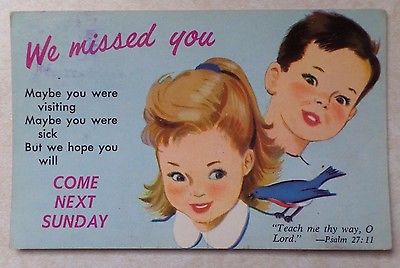 Title (ebay affiliate link): WE MISSED YOU COME TO CHURCH NEXT SUNDAY REMINDER Vintage Postcard 866