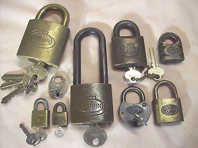 Title (ebay affiliate link): antique/vintage~CORBIN LOCK COLLECTION~9 DIFFERENT BRASS PADLOCKS~7 WITH KEYS~