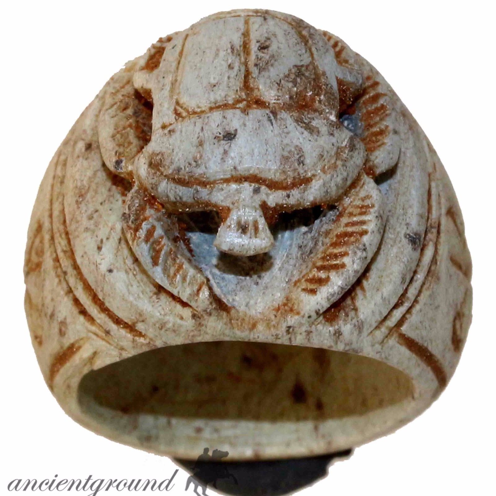 Title (ebay affiliate link): INTACT , MASSIVE RARE EGYPTIAN GLAZED RING WITH SCARAB ON THE TOP 700-1000 AD