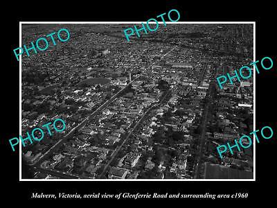 OLD LARGE HISTORIC PHOTO OF MALVERN VICTORIA, AERIAL VIEW OF GLENFERRIE Rd c1960