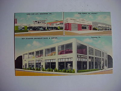 ROY STAUFFER CHEVROLET Scranton Old Forge ADVERTISING LINEN POSTCARD A-2565