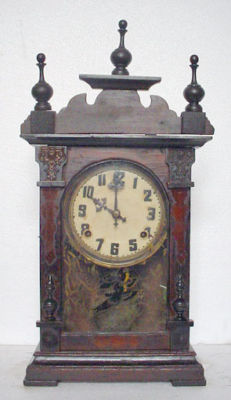 ANTIQUE 3 FINIAL PAINTED PANEL DECORATED MANTLE CLOCK