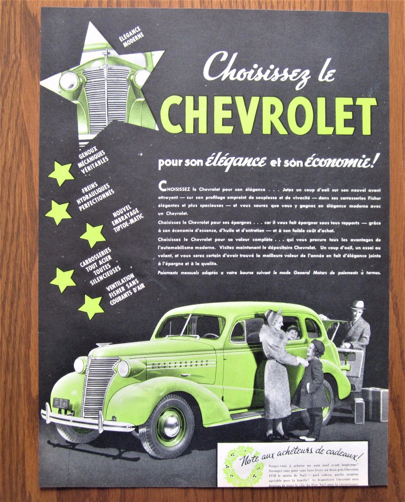 Title (ebay affiliate link): NICE 1938 CANADIAN CHEVROLET CAR AD FRENCH CANADA UNUSUAL COLOR