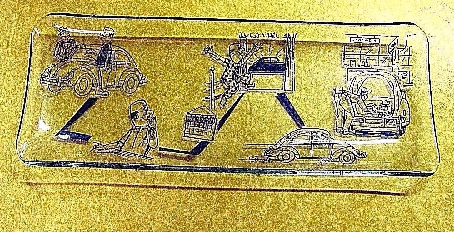 1950''s or 1960''s Volkswagen Advertising Change Pen Tray Cartoon Art Maintenance
