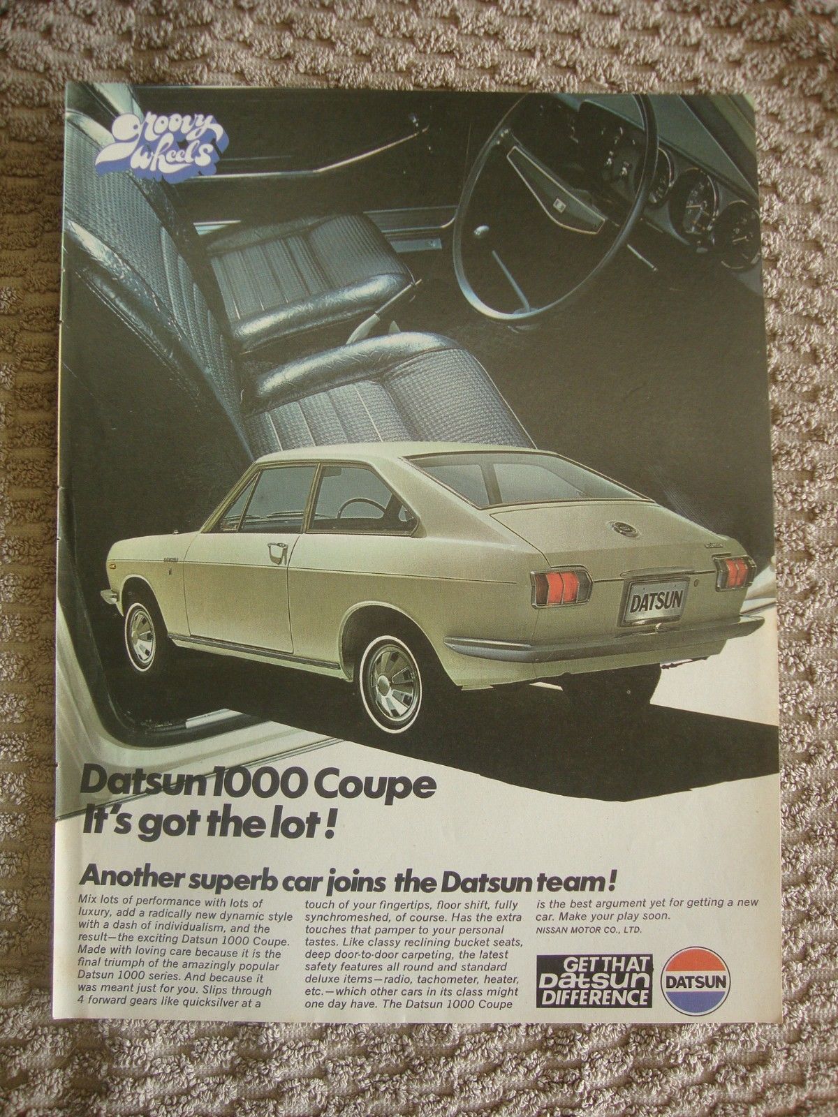 Title (ebay affiliate link): 1969 Datsun 1000 Coupe Nissan Aussie Original Magazine Advertisement