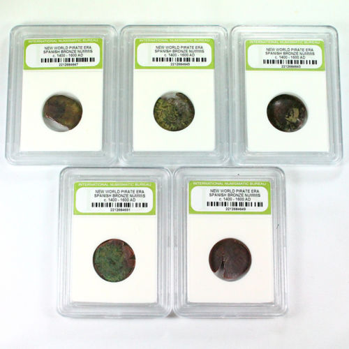 Title (ebay affiliate link): 5 Slabbed "Pirate" Coins - Bronze American Spanish Cobs - 7790