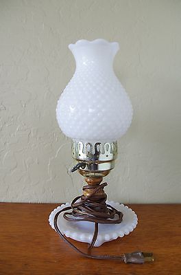 Title (ebay affiliate link): VTG Fenton Hobnail? White Milk Glass 12" Table Dresser Electric Hurricane Lamp