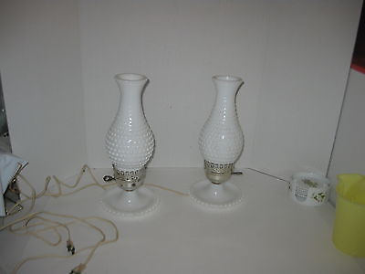 Title (ebay affiliate link): 2 VTG 1950''S MILK GLASS HOBNAIL BOUDOIR COTTAGE LAMPS / CANDLEWICK BOOPIE BASE