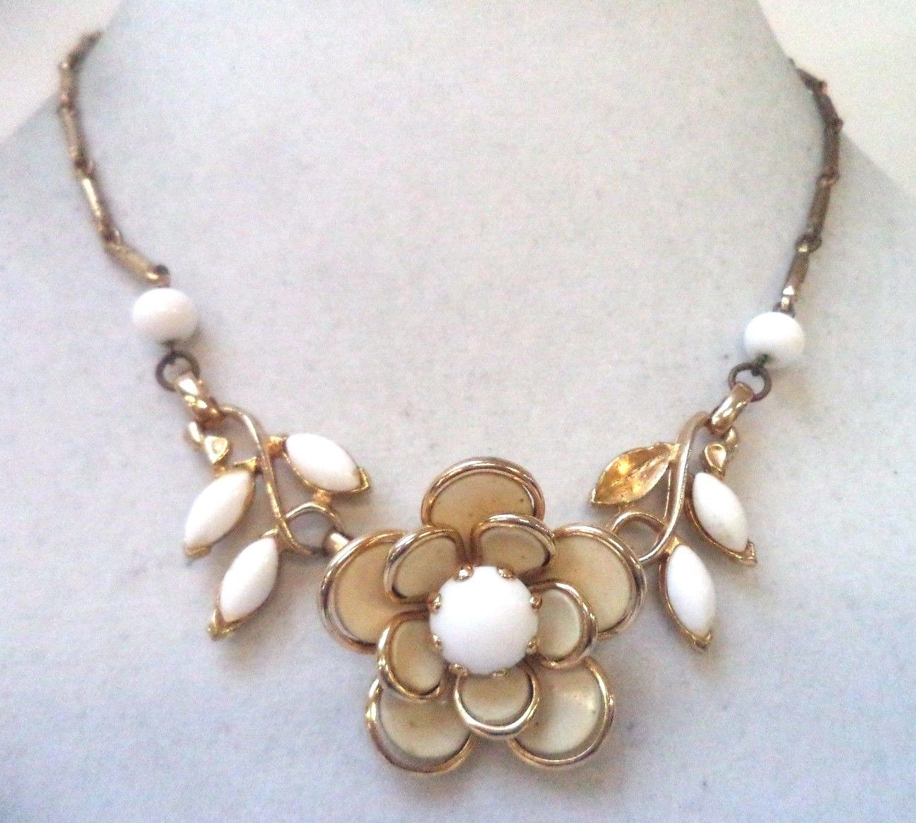 Title (ebay affiliate link): STUNNING VINTAGE ESTATE GOLD TONE MILKGLASS FLOWER 16 1/2" NECKLACE!!! 4204M